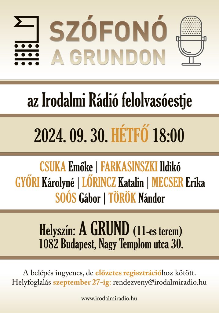 2024. szeptember 30-án az alábbi szerzőink olvastak fel SZÓFONÓ a GRUNDon című sorozatunkban:
