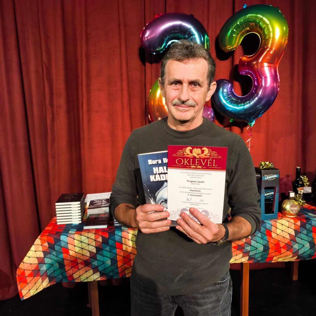 „Az Irodalmi Rádió legjobb szerzője 2025.” cím és díj elnyerésére,