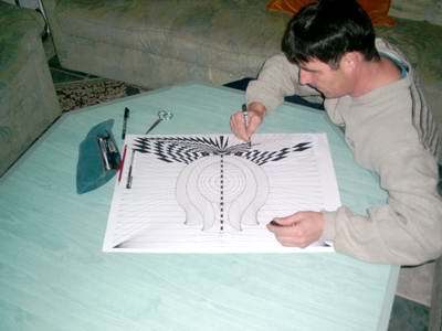 Tímár Zoltán vagyok. 1967-ben születtem. Gyerekkorom óta a rajz a legkedvesebb időtöltésem. Tíz éves koromtól az érettségi vizsgákig a letenyei rajzszakkör tagja voltam. Nem a tájkép és csendélet érdekelt, hanem a tárgyak, minták szerkezete, a hópelyhek szimmetriája és a kristályok, hálók világa. Kedvenc festőm és példaképe Vasarely. Az ő képeiből kiindulva teremtettem meg saját világomat, csipkeszerű kompozíciók és térhatású képek sorát. 1985-ben a Zalaegerszegi Faipari Technikumban végeztem. Itteni tanulmányaim a különleges szépségű bútorok és az intarzia felé terelték érdeklődésemet, és ez máig hatással van rajzaimra is. Rajztanárommal, Bokrosné Kamarás Klárával máig tartom a kapcsolatot. Az ő biztatására mutatom most be műveimet. |
