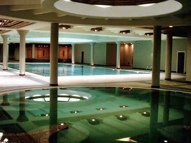 A kastély igazi gyöngyszeme nem más, mint egy három medencét (ebből kettőt a helyi termálvíz lát el), négy szaunát, egy gőzkabint és kondicionálótermet magában foglaló wellness központ. A befektetők elképzelése szerint a vállalkozás csak akkor lehetett gazdaságos, ha több mint ötven szoba elhelyezésére van mód, és ha egy reprezentatív uszoda is gazdagítja a szolgáltatások körét (végül összesen 61 szoba és apartman létesült). Ehhez azonban meg kellett találni a lehetőséget, hogyan lehet ilyen teret kialakítani a barokk kastélyépület mellett. Az elpusztult terasz tömegének rekonstrukciója mellett döntöttek. A barokk kertrész helyreállításának fontos része volt a terasz tetején levendulával, zsályával díszített aromakert, amely a földszinti éttermek szintjéhez csatlakozik. A külsőt régi téglákból épített kulisszafallal építettük, hogy az eredeti aránynak megfelelő megjelenésű legyen az új-régi tömeg. Belsejébe korszerű uszodát telepíthettek. Az oldalfali megvilágításon túl a tetőkert rendszeréhez illeszkedő felülvilágítók adják az uszoda nappali természetes fényét. A homlokzat mögött belül a teljes épület szélességében végigfutó portál teszi egységessé a teret. A vasbeton födém alsó bordázata a medencék rendszeréhez alkalmazkodik. A gyógymedencék fölött a felülvilágító körül küllőként elrendezett bordák látszanak. Az úszómedence fölött szigorúbb rendben állnak a bordák. Rendjüket követi a padlóburkolat kiosztása, a medence alján lévő mintázat. A helyenként megjelenő vörösfenyő álmennyezet szintén az uszoda belső terének tagolását szolgálja. Ez a szauna terasznak és a gyógymedencék környezetének ad hangulatosabb környezetet. Az uszoda alatt, talajvízszintnél jóval mélyebben külön szerelőszint épült, ahova a legnagyobb gépészeti egységeket rejthették. Innen szolgálható a konyha és a balneoterápiás rész szellőzése. Az újonnan épített, távolabbra eső vízkezelő épületből érkező víz fogadása is ebben az alsó térben történik. Lehetőség nyílik itt a legkülönfélébb terápiákra és szépségápolásra is.