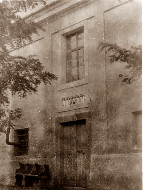 Képek: zsinagóga főbejárat felöli oldala, ÉNY-i oldal, K-i oldal, egykori bejárata, belső tér maradványai, rabbi ház, sahter ház és Holokauszt emlékmű.