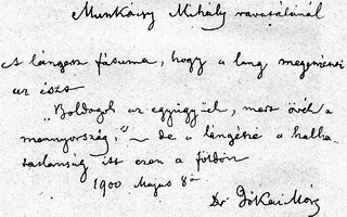 ![]() Jókai - Munkácsy Mihály ravatalánál A láng fátuma, hogy a láng megemészti az észt. "Boldogok az együgyűek, mert övék a mennyország." - de a lángészé a halhatatlanság itt ezen a földön. 1900. május 8 Dr. Jókai Mór |
