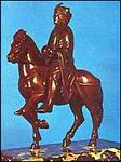 Nagy Károly kis lovas szobra (8. század; Louvre; bronzszobor). Stílusa klasszikus hatásról tanúskodik. A császárt fején koronával, kezében karddal és a hatalmat jelképező gömbbel ábrázolja. Összefoglalva szobrászatuk fő jellemvonásai: