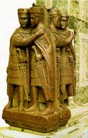 Flavius Anastasius konzul diptyhonja. (517) A részletek jellegzetesen bizánci pontosságról és gazdagságról szólnak. A konzul timpanonnal díszített tribünön ül, az egyik kezében jogar, a másikkal jelt ad a cirkuszi játékok vagy kocsi hajtó verseny megkezdésére. Az ókeresztény, azaz bizánci stílusú szobrászat jellemvonásai:
