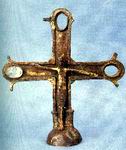 A kereszt Balatonfüred egyik középkori templomában feltárt sírból származik. A keresztforma egyértelműen bizánci eredetű.