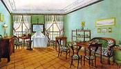 Biedermeier szobabelső Fő sajátossága a melankólia és az érzelmesség; témái: a szerelem, a család és a baráti érzések. Finomkodó intimitása, kirakatszerű érzelmessége különíti el a szentimentalizmustól. Párhuzamos a belsőépítészeti, a képző- és iparművészeti biedermeierrel. A merengés a formai csiszoltsággal párosul: a szerző egyszerre akar spontán érzelemkifejező és klasszicista formaművész lenni.