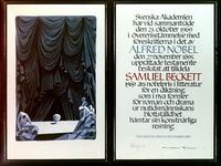 Whoroscope, 1930 című költeményében - Poroszkóh; igazából lefordíthatatlan szójáték - Descartes tölti be a lírai én szerepét, akinek dualista világképe és racionalizmusa Beckett egész életművére döntő hatást tett. Visszhangcsontok, 1935 című verseskötetét a szürrealista automatikus írás és T. S. Eliot költői példája ösztönözte. Több fricska, mint rúgás, 1934 című novelláskötete és első regénye, a Murphy, 1938 pedig a szürrealisták által kedvelt fekete humor egyéni változata. 1940-42 között a Murphyt lefordította franciára, 1942-44 között Watt címmel angolul, 1945-ben Mercier és Camier címmel franciául írt regényt. Felfogása szerint a művész csak magánemberként lehet társadalmilag elkötelezett, s minthogy a háború utáni években a francia közönség elkötelezett irodalmat igényelt, Beckett művei sokáig nem találtak kiadóra. Teljes ismeretlenségben, 1947-49 között írta legjelentősebb műveit: regénytrilógiáját és első két drámáját, amelyek közül a terjedelmesebb Eleutheria máig kiadatlan. Jelentős csavargónovellái (A kitaszított, 1947; Első szerelem, 1970) nagy regénytrilógiáját készítették elő. A 60-as években műveit már egyre szélesebb körben olvasták, s 1969-ben megkapta a Nobel-díjat „művéért, mely a regény- és drámairodalomban új formákat honosított meg, s az emberi nyomorúság ábrázolásán keresztül az ember felemelkedését kívánja szolgálni.” Amint meghallotta a hírt, összecsomagolt, s ismeretlen helyre távozott: nem kívánt nyilatkozni, interjúkat adni. 1989. december 22-én halt meg Párizsban. További főbb drámái: A játszma vége (1957), Az utolsó tekercs (1958), Némajáték; Ó, azok a szép napok (1961). Beckett drámáit számos nyelvre lefordították, s világszerte játsszák. |