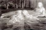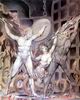 A 18. század második felében élt ez a nagy tehetségű londoni könyvművész, aki költő, filozófus, próféta, festő, rézmetsző volt egy személyben. Az angol romantikának e titokzatos alakját kortársai nem értették meg, s csak negyven esztendővel halála után a preraffaeliták fedezték fel művészetének értékeit s hozták nyilvánosságra műveit, amelyek előtt még a mai néző is sok tekintetben kérdően torpan meg. Egyéni stílusa, amelyet a szimbolizmus előzményének tekintenek, elválaszthatatlan saját keresztény elemekkel átszőtt mitológiájától. A költészet és a művészet szerinte a költői és látnoki zsenialitás egyik megnyilatkozása, amely az örök igazság, a művészet igazi értelmének kifejeződése. 1767-ben belépett Henry Pars rajziskolájába, 1772-től 1779-ig James Basiére rézmetsző mellett a Westminster Abbey gótikus sírjait rajzolta. Fantáziáját szabadjára engedte a saját kedvtelésből született metszeteken, de hagyománytisztelőbb stílusban dolgozott a megélhetés reményében készített, eladásra szánt grafikákon. 1779-ben a Royal Academy Schools növendéke lett, de az oktatással elégedetlen volt, mert a mesterek a legfontosabbnak a természet utáni rajzolás elsajátítását tekintették. Korai alkotásaira egy erőteljes és finoman kidolgozott klasszicista formanyelv jellemző, ezt tanúsítja a József történetét (pl. Har és Heva fürdőzése) ábrázoló, 1785-ben kiállított három akvarell. Egyéni stílusának egyik első jelentős példája a Boldog Nap, vagy más címen Albion tánca (1793-96 k.). A hozzá készült rajzok 1780-as datálásúak, Blake azonban sokszor korábbinak tüntette fel műveit, inkább az első megfogalmazás "eszményi" idejét jelezte, semmint a tényleges kivitelezését. Szöveg és kép különleges együttesét alakította ki 1788-95 között. Először verseit helyezte el a lapokon, majd a rajzait és ezután színezte ki, így készültek például a következő sorozatok: Az ártatlanság dalai (1789) és A tapasztalás dalai (1794), Menny és Pokol házassága (1790-93), Amerika (1793) és Európa (1794). A lapokat akvarellel színezi, az Urizen könyvének (1794) esetében saját temperát dolgozott ki, s a reneszánsz óta használt tojás sárga helyett enyvvel keverte a festéket. Ennek eredménye a gazdag, súlyos textúra, amely jól illik a könyv tartalmához. Blake a könyvillusztrációit külön lapokon is megjelentette és ezeket pontosan ugyanilyen technikával festette. 1795-ben ugyanezen a módon készítette a tizenkét színes nyomatból álló sorozatát, amelyhez a Biblia, Shakespeare, Milton és a történelmi események nyújtottak témákat. A kegyvesztettség utáni emberiségről szólnak, az embert megosztó, ellentétes erőkről. Az Ádám teremtése negatív cselekedetként mutatja a teremtést, Nabukodonozor az állatias ember példája, Newton a racionalitásé. 1799-ben bibliai tárgyú, kis képeket kezdett festeni, először temperával, majd 1800-tól 1805 között akvarellel. Bár ezek a képek szorosabban kapcsolódnak a forrásokhoz, mint a nagy színes nyomatok, Blake személyes érzelmeit is kifejezik. E munkákat követte első akvarellsorozata a Jób könyvéhez, majd a Milton verseihez készített, számos illusztráció. Dante Isteni színjátékához több mint száz illusztrációt rajzolt (1824- 27). Ezek az illusztrációk Blake gondolatait tükrözik, azt, ahogy ő értelmezte az irodalmi alkotást. Blake új rézmetsző eljárásában a maratásnak nagy szerepe volt, de ez nem a rézkarc enyhe maratása, hanem a képnek reliefszerű kiemelkedése a síkból, amelyet úgy ért el, hogy a képet és a betűt saválló lakkal a rézre rajzolta, s a szabadon maradt területeket egészen mélyen maratta. A maratásnak ez a technikája tulajdonképpen korai előfutárja volt az 50-60 évvel későbben feltalált fototípiának, azzal a jelentős különbséggel, hogy a sokszorosítás nem mechanikai módon történt. Legszebb képzőművészeti alkotásai: Az idő és tér tengere c. festménye és Jób könyvének 21db illusztrációja (1826). A Költői vázlatok (1783) című lírai kötet kísérletező alkotásai és burleszkregénye (Holdbéli sziget, 1784) után jelenik meg kiforrott verseskötete, Az ártatlanság dalai (1789). A szeretet érvényesülését a mindenségben, a minden létező egységességét hirdető kötet ellentéteként, szerves részeként jelent meg A tapasztalás dalai (1794) rézbe metszett, dialektikus látású kötete. Lázadó evangéliuma a Menny és Pokol házassága (1790). Szubjektív jellegű a két könyvből álló Milton (1804-1808), mely saját megvilágosodásának története, s ez mintegy előlegezi legnagyobb alkotását, a Jeruzsálemet (1804-1820), objektív látomását a mindenségben ható erőkről. Forrás: ARC - Art Renewal Center |
