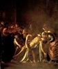 A művészettörténetben Caravaggio néven ismert Michelangelo Merisi. 1584 és 1608 között Simone Peterzano bergamói késő manierista művész mellett inaskodott. 1592- 93 táján Rómába költözött. Caravaggio azt vallotta, hogy egy jó virágcsendélet hatásos megkomponálása ugyanolyan művészi jártasságot igényel, mint az alakok festése; pályáját valószínűleg csendéletfestőként kezdte. A Gyümölcsöskosár feltehetően Del Monte bíboros megrendelésére készülhetett, 1596-tót Caravaggio ugyanis az ő házában élt. Az udvari emberek számára egy sor képet festett, amelyek lanton játszó, boros vagy virágos edényeket tartó, gyümölcsöskosarakat átnyújtó fiúk mellképeit ábrázolták. E művek közé tartozik az Önarckép fiatal Bacchusként és a Fiú gyümölcsöskosárral, a Zenés jelenet és a Bacchus 0203. Az alakokat egyszínű, de meleg tónusú háttér előtt ábrázolja. A kép felületén a festéket egyenletesen eldolgozta, a csendéletrészleteket pedig ragyogó színekkel festette meg, a felület és a textúra pontos, eleven. Ugyanakkor árnyalatnyi bizonytalanság lelhető fel az alakok térbeli elhelyezésénél. Noha zsánerképekről van szó, ezek mégsem realista alkotások. A fiúkból bágyadt, közönyös elegancia árad, fiatalságuk tiszta szépsége pedig keveredik a kevésbé ártatlan élvezetekben való nyilvánvaló jártasságukkal. Az itt még rejtett erotika a maga leplezetlen valójában nyilvánul meg a Győzelmes szerelemben. Caravaggio 1598-tól kezdett oltárképeket festeni. Legfontosabb megbízatásai római tartózkodásának hátralevő éveiben a Máté életéből vett jelenetek, a Szent Pál megtérése és a Szent Péter keresztre feszítése, a vanicellai Santa Marfia-templom számára 1602ben megkomponált festménye, a Krisztus sírba tétele és a Mária halála, amelyet a trasteverei Santa Marria della Scala-templom részére festett 1602 - 1604 között. Ezekben a művekben Caravaggio különös és eredeti vallásos stílust hozott létre, amelynek sajátossága a nézőre gyakorolt meghökkentő és közvetlen drámai hatás, valamint az emberi természet összetettsége és szenvedései iránt érzett mély együttérzés mindkettő új vonás volt a festészetben. A Contarelli-kápolnában látható olaj-vászon festmények három részből állnak. A középső kép Máté és az angyal, míg a két oldalszárny Máté elhívatása és Máté mártíromsága. Ezek a művek fordulópontot jelentettek a 17. század művészetében. Caravaggio témáihoz a valóság, a mindennapok felől közelített, alacsony társadalmi helyzetű modelleket alkalmazott A Máté és az angyal-oltárkép (egykor: Berlin, Kaiser-Friedrich Museum, elpusztult) első változatát az egyház vissza is utasította, mert illetlennek találta. A szentet ugyanis tagbaszakadt parasztként ábrázolja, akinek piszkos lába szinte a képből kilépve a néző orra elé tolakodik. A végleges változat sokkal hagyománytisztelőbb volt. A Máté elhívatása nyomorúságos helyszínt és távolról sem hősies alakokat jelenít meg; a szent és rikítóan közönséges ruhákba öltözött társai kártyaasztalnál ülnek egy római palota udvarán. Bonyolult lélektani reakcióikat, amelyekkel Krisztus megjelenését fogadják, életteli realizmussal ábrázolja a művész. A Raffaello idealizáló képeihez szokott közönség számára ezek a képek érthetően meghökentőek voltak. Caravaggio fokozatosan felhagyott korai műveinek egyenletes, a formákat kiemelő megvilágításával, és alakjait félhomályba kezdte helyezni, amit éles fénysugár világított meg. A fényárnyék hatásokat műtermében dolgozta ki: a fény és árnyék egyszerre drámai és poétikus ellentétével mélyen spirituális légkört teremtett. A plebejus jellemek, az erőteljes helyszínek és a szűk tér más műveiben is megjelenik. A Mária halálában a Szűz felpüffedt hulla. Bár a karmeliták elutasították "ízléstelensége" miatt, a kép megindítóan komor és ünnepélyes. A drámai hatásokat fokozzák a széles gesztusok, amelyek szinte áttörik a képsíkot és egybeolvadnak a nézőével. A Szent Pál megtérésében a szent a lova lábainál hever; döbbenetes, erős rövidülésben ábrázolt teste és szétvetett karjai arra szolgálnak, hogy a szemlélőt bevonják a drámába. Pál szemei csukva vannak, és a megtérés belső énjében megy végbe; a természetfeletti hatalmak külső, látható megjelenését hiába keresnénk a képen. 1606-ban Caravaggio egy verekedés során gyilkosságot követett el, ezért el kellett menekülnie Rómából. 1607-ben, Nápolyban tevékenykedett; itt készült legfontosabb művei Az irgalmasság hét cselekedete és a Jézus megostorozása. Előbbit az érzések emberi melegsége és a kompozíció meghökkentő szabadsága, utóbbit pedig a komor brutalitás jellemzi. 1607 - 1608-ban Caravaggio Máltán tartózkodott, ahol a Jeruzsálemi Lovagrend nagymestere megbízta Keresztelő Szent János lefejezésének megfestésével a valettai Szent János-székesegyház számára. Miután összeütközésbe került a máltai hatóságokkal is, előbb Szicíliába menekült, majd visszatért Nápolyba. 1610-ben, útban Rómába megbetegedett és a láz végzett vele. Szicíliában még megfestette Szent Lucia temetését, Lázár feltámasztását és a Gyermek Jézus Szent Ferenccel és Szent Lőrinccel című képét. Forrás: Studiolo 1.3.1. |