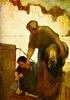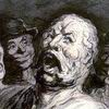 1808 február 26-án született Marseilleben. Apja üveges mester és költő volt, kit poétái ambíciója Marsailleből csakhamar (1815 körül) Párizsba hozott; itt adta ki Veillées poétiques c. kötetét, amelyet jól megérdemelt sikertelenség fogadott. A kis Honorénak hamarosan kenyérkereset után kellett látnia; előbb egy végrehajtóhoz adták kifutó fiúnak, majd egy könyvkereskedőhöz inasnak; azonban sehol sem volt maradása. Mindenáron rajzolni akart. Kérését egy nagyhírű archeológus, Alexandre Lenoir elé terjesztették, ő a fiú rajzaiban kétségtelen tehetség nyomait látta s maga vette kezébe oktatását. Honorénak azonban itt sem volt nyugta; nem az a rajz volt ez, amiről ő álmodott. Beállt egy Ramelet nevű litográfushoz; hamar megtanulta a kőnyomó mesterség elemeit s azután dolgozott a saját kénye kedve szerint. Közben néha (ritkán) Boudin akadémiáját látogatta. Ez volt az ő egész iskolázottsága. Később sem rajzolt soha modell után. Egyike a legcsodálatosabb jelenségeknek, hogy válik valaki úgyszólván minden iskolázottság és természet után való rajzolás nélkül százada egyik legnagyobb realista rajzolójává! Első litográfiái bizonyára, elvesztek vagy felismeretlenül lappanganak. Legrégibb ismert lapja a 'Mayeux chez les füles de joie' c., valószínűleg 1829-ben készült. Ebben és a következőkben, melyek 1830-tól kezdve sűrű sorban jelennek meg, az akkor divatos kőrajzolók, főleg Charlet és Travies nyomdokaiban halad 1830-ban a La Silhouette c. képeslap közli két kőnyomatát. Az éles szemű Charles Philipon, a La Caricature szerkesztője, e jelentéktelen kezdetekben is felismeri a tehetséget s lapjához hívja. Daumier itt elemébe jut s néhány habozó kísérlet után a karikatúra mesterművek kiapadhatatlan sorát ontja magából. Philipen 1830 novemberében alapítja a La Cari-rature-t. A lap hetenként jelenik meg, négy oldal szöveggel és két kőnyomatú melléklettel. Szinte egyetlen célja a júliusi monarchia támadása. A királyt, a minisztereket s a kormánypárt korifeusait oly kíméletlenül, oly határtalan gyűlölettel támadja, aminőre alig ismerünk példát. A király széles állú, fölfelé keskenyedő s végül homloka csúcsán egy hegyes hajfürtben végződő képe veszedelmesen hasonlított a körtéhez; s ha a La Caricature valamely litográfiáján körtét látunk, mindig Lajos Fülöpöt kell értenünk alatta. Daumier is gyakran élt a 'poiret' szimbólumával. 1831 végén rajzolta első karikatúráját Philipon részére, melyen Lajos Fülöpöt mint Gargantuát ábrázolta. A La Caricature nem közölte ugyan, de Daumier hat hónapi börtönt kapott érte. Az ítélet végrehajtását felfüggesztették, bizonyára abban a hitben, hogy a szerző meg fog javulni. Daumier azonban nem javult meg. A La Carica-ture-ben megjelent első lapja ,- a 'Tres humbles, tres soumis, tres obéissants serviteurs du royaumet' c. - a pénzes zacskókkal, rendjelekkel stb. megrakott trón előtt hason fekvő politikusokat ábrázol. Második lapja - "Le sauchemar de Lafayette" - a hadvezért a kanapén hanyatt fekve, álomba merülve mutatja, hasán egy óriási körtével. A 'Maszkok' politikusok torzított maszkjait adja, középütt persze az elmaradhatatlan körte. Nem riad vissza attól sem, hogy a királyt felakassza; a kiállításunkon látható első képen egy csoport azon erőlködik, hogy az óriási körtét csiga segélyével felhúzza. Midőn azonban Daumier arra vetemedik, hogy a párizsi rendőrfőnököt, Gisquet-t is kifigurázza, nincs számára, többé kegyelem s a hat hónapot le kell ülnie. A börtönt nem fogta fel tragikusan. Penzióbeli társaival, különösen a tolvajokkal, összebarátkozott és köztük nagy tekintélyre tett szert. Megfigyeléseit elraktározta páratlan emlékezetében; nem egy híres későbbi lapja ezekből az emlékekből táplálkozik. Közben dolgozgat is; a hat hónap alatt egész sorozat akvarellt készít. Ez a hat hónapi börtön volt életének egyetlen nagy külső eseménye. Napjai ezután a folytonos munka szakadatlan egyformaságában telnek el. Mikor 1835-ben a szeptemberi törvények véget vetnek a politikai karikatúra lehetőségének, a társadalmi torzkép terére lép át; később, az idők változásával, így különösen 1848/49-ben és 1870/71-ben vissza-visszatér első szerelméhez, a politikához. A zsurnalisztika számára való örökös kőnyomatrajzolást lassankint robotnak érzi; szeretne szabadulni tőle s csak a festészetnek élni. 1860-ban végre szakít a Charivarival s két éven át csupán festészettel foglalkozik; de 1862-ben már a megélhetés szüksége ismét visszahajtja régi jármába. Türelmesen húzza az igát, míg látása 1877 körül annyira meg nem gyengül, hogy mindennemű rajzolást abban kell hagynia. 1878-ban visszavonul kedvenc nyaralóhelyére, az Oise szelid völgyében fekvő Valmondvisba, abba a kis házikóba, melyet öreg barátja, Corot vett meg számára. Itt hal meg 1879 február 11-én. Közel ötven éves munkássága rendkívül termékeny volt. Körülbelül 400 festmény, akvarell és rajz, 900 fametszet és 4000 litográfia maradt utána. Mindezek együtt adják csak tehetségének és törekvéseinek teljes képét. De kőnyomatai, melyeket hol igaz kedvvel, hol kényszerű robotmunkával, de folytonosan termelt, magukban is világosan mutatják művészete sajátos útjait. Gyakran ábrázolt bohócokat és akrobatákat (Parádé) és színpadi jeleneteket (Crispin és Scapin). Egész sor képen festette meg Don Quijote és Sancho Pansa alakját. Híressé vált mondása: "Három dolog soha nem tér vissza: a kilőtt nyíl, a kimondott szó és az elmúlt nap." Forrás: Meller Simon ÍZELÍTŐ MŰVEIBŐL: |