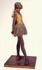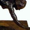 Eredeti neve De Gas, s csak 1870 után szignálta képeit Degas névvel. Mindennapi életből vett jeleneteiben merészen egyéni képi világot teremtett. Szülei emigránsok leszármazottai voltak, apja Nápolyból, anyja pedig New Orleansból jött. Leszámítva azonban néhány fiatalkori itáliai utazását és egy 1873-ban tett látogatását nagybátyjánál New Orleansban, egész életében párizsi maradt. Minden fő témáját a párizsiak életéből vette. Egy remekművét alkotta az Egyesült Államokban, Gyapotkereskedés New Orleansban címmel. Nem érezte azonban jól magát a tengerentúlon. "Csak abból lehet művészetet csinálni, amit az ember jól ismer" - mondta egyszer. Apja bankár, a családi vállalkozás párizsi fiókjának igazgatója volt. Amikor Edgar a jogi pálya helyett a festészetet választotta, az apja olyan jövedelmet biztosított a számára, amellyel függetlenítette a patrónusoktól és az akadémiai elismerés kényszerétől is. Csak 1875 után kellett megélhetését hivatásos művészként biztosítania, amikor örökségének legnagyobb részét fivérére, Achille-ra áldozta, hogy megmentse a tönkremeneteltől. Anyagi függetlensége állt magányos és arisztokratikus viselkedésének hátterében is. 1870 után sohasem nyújtotta be műveit a Szalonnak. Művészete a hagyományokban gyökerezett. 21 éves korában az Ecole des Beaux-Arts hallgatója lett, ahol Ingres egykori tanítványa, Louis Lamothe vette szárnyai alá. A főiskolán és első itáliai útja során a régi mesterek műveit tanulmányozta és másolta. "Amit csinálok, nem más, mint az elmélkedés és a nagy mesterek tanulmányozásának eredménye." Hite szerint "a természet tanulmányozásának nincs jelentősége, mert a festészet a hagyományokon alapuló művészet." Noha 1862-ben megismerkedett Manet-tel, érdeklődése csak lassan fordult a korabeli témák felé. Első kompozíciói történelmi témájúak voltak. E műveket egytől egyig az akadémikus hagyományokon alapuló, gondos előkészítő tanulmányokat követően alkotta meg. Néhány kisméretű, témájául a lóversenyt választó vásznától eltekintve, az 1860-as években csak közvetett módon foglalkozott modern témákkal. A Bellelli család című hatalmas vásznával kezdődően, amely firenzei nagynénje családját ábrázolja, egy nagyszerű portrésorozatot festett. Modelljeit aprólékosan kidolgozott enteriőrökben ábrázolja, így az elmélyült és kifinomult jellemábrázolást eredeti, sőt bizarr kompozícióban jeleníti meg. Ekkorra azonban Degas már kutatni kezdett a modern témák után, és a lehetséges motívumokat jegyzettömbjeiben gyűjtötte össze. A táncosok az 1870-es években festett, próbáló balett-táncosokat ábrázoló sorozatban kapták meg az őket megillető helyet. Ennek egyik példája a Tánciskola. Degas művészi pályájának legjelentősebb művei ezek az egyáltalán nem nagy, sőt olykor kifejezetten kisméretű, tompa színekkel megfestett képek. A balett próbákon Degas a báj és az unalom, a kecsesség és a sutaság különös keverékével találkozott, az alakok pedig nem dramaturgiailag, hanem véletlenszerűen, a szertartásnak és az ismétlésnek megfelelően csoportosultak. A sivár próbatermekben, a nagy tükrök és a hosszú ablakok között titokzatos perspektívákat fedezett fel, egy olyan világot, amelyben az álom és a nyers valóság keveredett. Az 1870-es porosz-francia háborút követően Degas látása egyre gyengült, és az 1880-as években felhagyott kisméretű balett jeleneteivel. Ehelyett különféle anyagokkal kezdett kísérletezni, mindenekelőtt a pasztellel. Témáit a lóversenyek, a színház, a mosónők, a kalap árusnők, a kávéházak és a kabarék szolgáltatták. Teljesen magáénak azonban két motívumot érzett: a balettet és a fürdőző, szépítkező nőt. Ezeken a képein a pasztellel csaknem absztrakt ragyogást tudott elérni, amely a japán művészet hatására utal. Fürdő nőket ábrázoló sorozatán az elénk táruló képek egyszerre intimek és személytelenek; közeliek, de mégis elvontak és szenvtelenek. Élete során Degas mindössze egyetlen plasztikai alkotást mutatott be az 1881-es, hatodik impresszionista kiállításon: a Tizennégy éves táncosnő viaszfiguráját, amelyet a számára készített muszlin tüllszoknyába, vászon pruszlikba és szatén cipőbe is öltöztetett. Halála után azonban 74 kisebb, többnyire viaszból készült figurát találtak műtermében. A nagyvonalúan, mégis precízen modellált táncosok, fürdőzők és lovak alapján megállapítható, hogy Degas a 19. század egyik legnagyobb szobrásza volt. Barátságtalan természete ellenére támogatta az általa nagyra becsült fiatal művészeket. Halálakor gyűjteményében voltak Cézanne, Gauguin, Pissarro, Sisley, Morisot és Van Gogh alkotásai. Noha vonzották a nők, félszeg és egyúttal büszke természete miatt sohasem nősült meg. Utolsó éveiben csaknem teljesen megvakult és 1912-ben, amikor el kellett hagynia azt a műtermet, amelyben hosszú éveken át dolgozott, becsomagolta vásznait és soha többé nem festett. Forrás: Akadémia 1.0.1. ÍZELÍTŐ MŰVEIBŐL: |