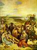 A 19. század első felében a romantika és a festőiség képviselője. Személyisége azonban alapvetően különbözött a Victor Hugo körül gyülekező forrongó fiatal romantikusokétól. Zárkózott és arisztokratikus természete Önarcképén is tükröződik. Nagypolgári családban született, és alapos klasszikus képzésben részesült. 1816-ban a kimagasló klasszicista művész, Pierre-Narcisse Guérin műtermében folytatta tanulmányait. Itt találkozott Géricault-val, aki nagy hatással volt rá. 1825-ben Angliában járt, 1832-ben Marokkóban tett látogatást. Visszatérte után a hivatalos körökbe vezető baráti kapcsolatai révén számos fontos, dekoratív megbízást kapott. Géricault képe, A Medúza tutaja ihlette a Dante bárkája című alkotását. Ez volt az első Szalon-festménye, és általános elismerés fogadta. Színei itt még közel állnak Géricault-éhoz: döntően földszíneket és éles fény-árnyék ellentéteket használ. A festmény ugyanakkor már mutat valamit abból az expresszív színhasználatból is, amelyet pályája során kifejlesztett. Stílusában Constable hatására következett be döntő változás, akinek a műveivel 1823-ban ismerkedett meg Párizsban. Az 1824. évi Szalonban állította ki a Khioszi mészárlást. Lehet, hogy Constable hatására átfestette a vásznat: különböző színű festékpettyeket helyezett el a kép előterében, hogy mozgalmassá tegye a felületet és kromatikus színharmóniában egyesítse a kompozíciót. A Khioszi mészárlás és a Görögország Missolonghi romjain témáit a görög szabadságharc eseményei ihlették, amelyek iránt főleg Byron keltette fel érdeklődését. Az 1830. évi forradalom inspirálta A Szabadság vezeti a népet című festményét, amelyen az idealizmust életszerű, realista kifejezésmóddal párosítja. 1832-ben tett marokkói látogatása során úgy találta, hogy az arabok magatartásukkal, öltözködésükkel és életmódjukkal élő kapcsolatot jelentenek az antik világgal. Természetes méltóságuk ellentétben állt a klasszicizmus hűvös formalizmusával. Marokkói vázlataiban az angol akvarell-technikáját alkalmazza, hogy benyomásainak frissességét kellően meg tudja örökíteni. Az észak-afrikai napfény intenzitása élesebbé tette megfigyeléseit a fény és a színek kölcsönhatásáról. Felfedezéseit az Algíri nők-ön hasznosította: a helyi színeket a rájuk eső fény intenzitásától függően módosította, és a komplementer színek alkalmazásával kontrasztokat teremtett. Útjának eredménye egy sor kép lett, például a Zsidó menyegző. Delacroix főbb dekoratív megbízásai Párizsban Lajos Fülöp uralkodása idején a következők voltak: a Salon du Roi és a könyvtár a Bourbon-palotában, a Luxemburgpalota könyvtára, egy Pietá a Saint-Denis du Saint Sacrementtemplomban, a Louvre Apollógalériájának mennyezete, a Salon de la Paix a városházán (elpusztult) és a Chapelle des Anges Saint- Sulpice-ben. E műveinek koncepciója a barokk falfestmények hagyományait követi, de ennek keretein belül jelentős fejlődést ért el a színek kezelésében. Számára központi kérdés volt a fényerősség problémája; ennek megfelelően csökkentette a fekete mennyiségét, és fehér alapozást kezdett alkalmazni; ezt a technikát később az impresszionisták is átvették. Delacroix fényelmélete két forrásból táplálkozott: a természet alapos megfigyeléséből és a színek kölcsönhatásáról szóló tudományos munkákból, köztük Eugéne Chevreul elméletéből. Pályája során Delacroix nagyszámú, szín gazdag és élettel teli vásznat festett, köztük híres állatképeket is, az arabok életéből vett jeleneteket, valamint a középkori történelemből és az irodalomból merített témákat (Hamlet és Horatio). Sok sikeres portré is fűződik a nevéhez, így Chopin és Paganini arcképe. Delacroix-t érdekelték a művészet elméleti kérdései is. Belekezdett egy művészeti szótár írásába, amelyet azonban sohasem fejezett be. Naplót is vezetett, amely magánéletének, művészi tevékenységének és esztétikai elméleteinek értékes forrása. 1855-ben "Nagy Becsületrend"-del tüntették ki, és 35 művét mutatták be a párizsi világkiállításon. 1863-ban halálakor Charles Baudelaire, legjobb és legmegbízhatóbb barátja írt róla nekrológot. Forrás: Akadémia 1.0.1. ÍZELÍTŐ MŰVEIBŐL: |