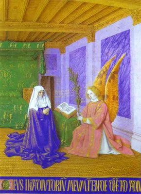 Miniatúra, Étienne Chevalier híres imakönyvéből színes pergament (Condé Múzeum, Chantilly)