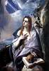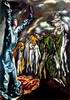 Eredeti neve - Domenikosz Theotokopoulosz. Kréta szigetén született, amely akkor spanyol birtok volt. Életének korai szakaszáról kevés adatunk van. Egy kortárs miniatúrafestő szerint Tiziano velencei műhelyében tanult, mielőtt 1570-ben Rómába utazott. Néhány évvel később ellátogatott Madridba, valószínűleg azért, hogy II. Fülöptől megbízást nyerjen az Escorial számára festendő képekre. 1577-ben ment Toledóba, hogy a Santo Dominguo el Antiguo- templom számára oltárképeket fessen és megtervezze az oltárok építészeti keretét és szobrászi díszítését. Komolyan érdekelte az irodalom, a történelem, a filozófia és a teológia, és ebben megerősíthették értelmiségi barátai, akikkel Itáliában is, Spanyolországban is sok időt töltött. Római tartózkodása idején kapcsolatba került Fulvio Orsinivel, a régiségbúvárral, a Famese-palota könyvtárosával és a Gergely pápa naptárreformjában közreműködő toledóí Pedro Chaconnal. Toledóban minden bizonnyal elnyerte a nagy műveltségű, kozmopolita Mendoza család kegyeit. Közeli barátja volt emellett két pap, Luís és Díego da Castílla, továbbá Antonio Covarrubias és Salazar de Mendoza történész. Két híres költő, Gongom és Paravicino dicshimnuszokat írt róla. Festményei 1580-tól a keresztény tanítás neoplatonikus értelmezését tükrözik. Az isteni megnyilatkozás ábrázolásában Greco elutasította a naturalista formákat, és elvont formák megalkotásával akarta elmélyíteni a vallási áhítatot. Az isteni fényességet tükröző fények és színek kápráztató ragyogása megvilágosítja a szemlélő szellemét is. Itáliai munkássága kezdetén természethű ábrázolásra törekedett. Korai stílusának csúcspontját első toledói munkái képviselik. A székesegyház sekrestyéje számára készült Espolio (Krisztust a keresztre feszítés előtt megfosztják ruháitól) jelenetében a lehető legpontosabb rajz segítségével meggyőző, háromdimenziós formákat hozott létre, és így alakjai színes szobrok benyomását keltik. Hogy El Greco milyen gazdag képzelőerővel ragadta meg témáit, azt a legszembetűnőbben a II. Fülöp megrendelésére festett Szent Mór vértanúsága bizonyítja. A képet a megbízó nem fogadta el, és másikat készíttetett helyette egy közepes olasz festővel, aki teljesen hagyományos felfogásban festett lefejezett emberi testeket mintázott, amelyek mintegy kizuhannak a képből, míg El Greco ezt a motívumot a háttérbe helyezte. A vérfürdő és saját Espoliójának harsány érzelmei helyett a vértanúság témájáról folyó vitát helyezte a középpontba. Szent Mór és légiójának tisztjei kecses mozgású, karcsú teremtményekként jelennek meg a hideg és tompa színekből - citromsárgából, halványszürkéből, halványkékből és halványrózsaszínből- szőtt háttérfüggöny előtt. Ettől fogva El Greco tevékenysége lényegében a toledói megbízói számára végzett munkákra szorítkozott; az 1580-as években kialakított stílusát kis mélységű térbe sűrített, ritmikus ívek rendjébe illeszkedő, síkszerű és megnyújtott formák jellemzik. A színek nem annyira leíró, mint inkább kifejező jellegűek, és a világostól a sötétig haladó tónusfokozatok határozottan elválnak egymástól. Ennek a stílusnak talán legkáprázatosabb példája a toledói Santo Tomé templom számára 1586-ban megfestett Orgaz gróf temetése. Ezután stílusa megváltozott. Az anyagi jelenségek szerkezetének megfigyelése helyett elvont formákat alkotott, hogy eszméket fejezzen ki velük. A fény erőteljesebbé válik, és mintha magából a formából sugározna. A színek változatosabbakká válnak, és vibráló hatást keltve ellentétpárokat alkotnak. A körvonalak kevésbé határozottak, a fények és a színek mintha teljesen elszabadulnának az anyaghoz kötöttségüktől. A képeknek az 1580-as évekre jellemző síkszerűségét áttörik a függőlegesen felfelé törekvő formák, a rájuk vetülő izzó fények és a ragyogó színek. A festőnek teljesen a spirituális világra összpontosított figyelmét mutatja több nagyméretű oltárképe is. Portréin és vallási tárgyú kompozícióin egyaránt megnyilvánul fölényes technikai tudása, szín, a fény és a forma alárendelése a gondolati kifejezésnek. Az a képmás, amely barátját, Paravicino szerzetest örökíti meg, szép példája annak, ahogy El Greco át tudja szellemíteni az arc kifejezését, hogy megjelenítse az ember gondolatát. Mesterien sűrített eszközök, ritmikus folt-együttessé összeálló lendületes vörös, fekete és fehér ecsetvonások érzékeltetik a költő kifinomult lényét és éles szellemét. Művészete válasz az ellenreformáció idején Toledóban uralkodó szellemi légkörre. Toledóban hunyt el 1614 április 7-én és a Santo Domingo el Antiguo templomban helyezték örök nyugalomra, ahol első toledói művét alkotta. |