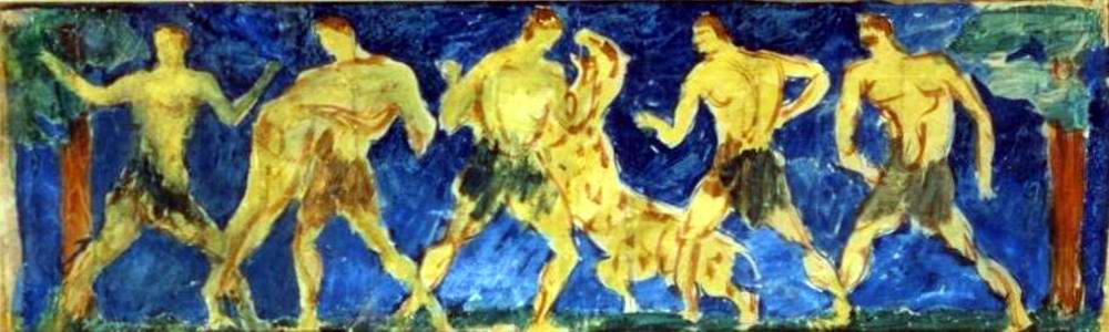 akvarell, papír (vázlat, eredeti falfestmény - Vas utcai kereskedelmi)