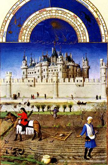 Kódex könyv - 10. fóliaTres Riches Heures du Duc de Berry kódex - Október (Musée Condé, Chantilly)