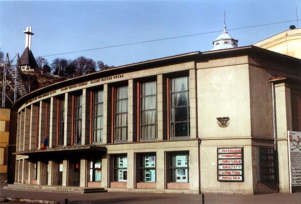 A jelenlegi épület 1909-1910-ben épült, az első előadást 1910 július 18-án tartották. Építészek: MÁRKUS GÉZA, SPIEGEL FRIGYES. Átépítve: 1959-1961, építészek: PAIU IOAN, SÓVÁGÓ JÁNOS. |