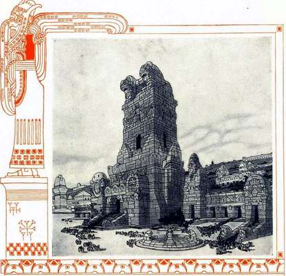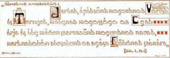 MÁRKUS GÉZA rajzolta e füzet második mű-mellékletét, amely a bábeli torony építéséről szóló bibliai sorokhoz készült.
