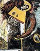 egyebet kevert a festékbe, vagy szórt a képre és újszerű, vad faktúrákat