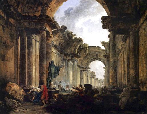 1 A Louvre víziója romokban 2 A Louvre terve - képzeletbeli nagy szalonja 1796