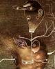 előszeretettel alkalmazza a ragasztó, gipsz és homok keverékét. Művészete erősen