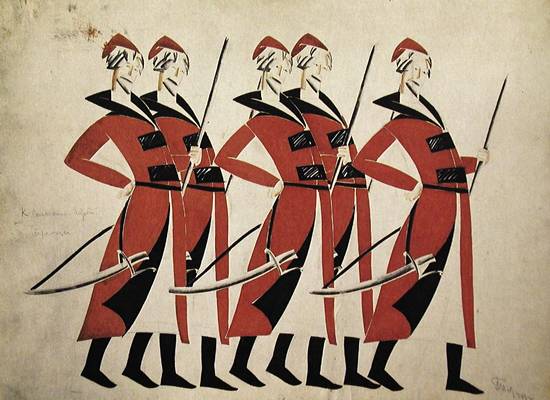 1914-től leginkább a relief és a díszletkészítés érdekelte. Élete során öt orosz témájú előadáshoz készített díszleteket és jelmezterveket, ezek szinte kivétel nélkül fontos láncszemei voltak művészi pályájának. |