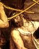 A század első évtizedéből származó olyan festményei, mint a Cigány Madonna kompozíciójukban Bellini mintáit követik, de szabad ecsetkezelésükben és gazdag textúrájukban eltérnek tőle. A Mária mennybevitele oltárképen, amelyet a velencei Santa Maria dei Frari főoltára számára festett 1516 és 1518 között Mária vörös ruhában egy fiú angyalokkal teli felhőn, narancsszínű fényglóriában közeledik; a fogadására készülő Atya mintha a szemünk előtt öltene alakot, az apostolok pedig Mária felé hajlanak. Ezt a drámai stílust egészen más kontextusban lelhetjük fel a Pesaro család fogadalmi oltárán. Itt Tiziano két korábbi típust egyesített: a fogadalmi képet, amelyen az adományozó ott térdepel az egyik oldalon, a trónuson ülő szent alakja előtt, és a hagyományos, trónoló Madonnát a szentekkel. A kiegyensúlyozott kompozíció nagy hatással volt a későbbi velencei oltárképekre. A vallásos témákkal párhuzamosan egy sor allegorikus és mitológiai tárgyú képet is festett. Az Égi és földi szerelem jellegzetes alkotása. Nagyjából ugyanebben az időben látott hozzá a ferrarai herceg számára készült sorozathoz. Ebből az időszakból származó portréin fokozatosan levetkőzte a visszafogottságot. Az 1530-as években stílusa nyugodtabb lett. Az Urbinói Vénusz képen az istennőt ébren, egy árnyékos szobában ágyon fekve ábrázolja, ölebbel és szolgálókkal. Már nem is istennő, hanem egy szép asszony. Tiziano ismerte a kortárs közép- itáliai festészet eredményeit, de csak az 1540-es évek munkái bizonyítják, hogy ez meghatározó hatással volt rá. Barátságban volt Jacopo Sansovinóval, ismerte a mantovai Giulio Romanót és munkáit, találkozott Vasarival, aki az 1540-es évek elején Velencében járt. Ezeknek a kapcsolatoknak a gyümölcsét láthatjuk olyan munkáiban, mint a velencei Santa Maria delta Salute sekrestyéjének mennyezeti táblái, amelyeket 1542 és 1544 között festett, és amelyeket határozottabb rajz, tompább színek és a rövidülés merész alkalmazása jellemez. A pápa állandó szolgálatába akarta fogadni Rómában, de ő visszautasította ezt az ajánlatot, és egyre inkább V. Károly császár, majd fia, II. Fülöp spanyol király pártfogására támaszkodott. 1548-ban az augsburgi császári udvarba rendelték, ahol V. Károly a protestáns fejedelmek előző évi mühlbergi veresége után Németország ügyeit intézte. Tiziano feladata az volt, hogy megfesse az események főszereplőinek arcképét, mindenekelőtt az V. Károly a mühlbergi csatában című lovas portrét. A császárnak még egy megbízása volt Tiziano számára: meg kellett festenie a császári családot a Szentháromságot imádva, amely A Glória címen ismert. Ezt a képet vitte magával a császár, amikor 1556-ban visszavonult a világtól. Nagyjából ugyanebben az időben II. Fülöp számára egy mitológiai sorozatba kezdett. Ezeket a műveket a festék egyre szabadabb kezelése és a tört színek általános alkalmazása jellemzi. A Marszüasz megnyúzása című képe feltehetően a műtermében volt, amikor meghalt; az Action halálával együtt olyan kegyetlenséget ábrázol, amely láthatólag része volt Tiziano világról alkotott képének. A mitológiai tárgyú munkákkal párhuzamosan egy sor vallásos tárgyú mű is készült, például az ezüstösen örvénylő Angyali üdvözlet a velencei San Salvatoréban vagy a Töviskoronázás, tört színeivel és pislákoló fényeivel. Ez a festmény volt egyik utolsó vászna. Egész pályájának mintegy összefoglalása a Piéta. Arra az oltárra szánta, amely elé eltemettetni kívánta magát. Halálakor a kép még nem volt kész; tanítványa, Palma Giovine fejezte be. Piétája nemcsak hátra tekint, hanem előre is mutat: örökségét halála után egy évvel, az 1577-ben született Rubens vette át. |