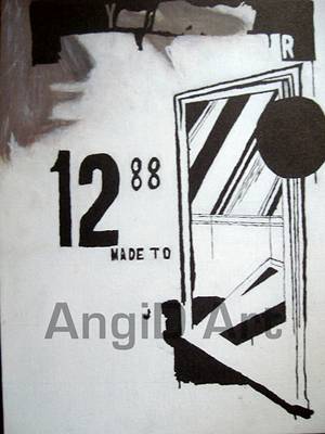 A kép hagyományos, a későbbi művekhez képest némileg tétova kép, amely a fény és az árnyék szembeállításából fakadó feszültségre hagyatkozik. Gondos gondatlansággal van megfestve. A vászon három részre osztódik: a felső sávot sötét, dobozszerű, zárt folt tölti ki, amelynek alsó nyílása mögött világosabb háttér látszik; az alsó, nagyjából a felsővel azonos méretű harmadot egy réteg fehér festék határozza meg. Középső része kapcsolja össze a felső és az alsó sávot a maga ecsetnyomaival és festékcseppjeivel. Több számjegy, nyomtatott betűs mondatkezdet és egy nyitott ajtó körvonala látható még a képen. A számjegyek és a betűk határozottak, ám az ajtó belső részének festésmódja mintha a bal kéz felőli teret tükrözné vissza. Csak a 12-es számjegy és a "MADE TO" kezdetű, váratlanul félbeszakadó mondat kivitelezésében látszanak a sokszorosítás nyomai; maga az ajtó talán egy képregényből származott át a festményre. |