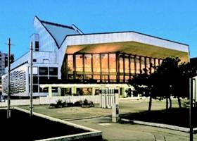 nagyméretű fekete-fehér mozaikja három évtizede díszíti a teátrum