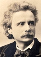 1874-ben Henrik Ibsen levelében felkérte a Peer Gynt című dráma megzenésítésére. Grieg nagy kihívásnak tekintette a művet, nehezen szánta rá magát. Végül 1876 januárjában elkészült a 22 tételes partitúra, amiből utóbb két hangverseny-szvitet állított össze. Az első szvitet megnyitó Reggeli hangulat poétikus természeti kép; az Aase halálát megjelenítő második tétel szorosan kapcsolódik a költeményhez: Peer Gynt megérkezik anyja halálos ágyához, és fantasztikus történetekkel segíti át a haldoklót a túlvilágra. Anitra tánca - a következő tétel - vérpezsdítő keleti táncmuzsika, amelyet az arab vezér leánya Peer szórakoztatására lejt. A negyedik tétel kísérteties lidércálom a hegyi király csarnokáról. A második szvit a menyasszonyrablás jelenetével és Ingrid panaszával kezdődik. Az arab tánc Anitra táncának második szvitbeli megfelelője. A harmadik tétel Peer Gynt hazatéréséről szól, a viharos tenger és a hajótörés realisztikus megjelenítése. A művet záró darab, Solvejg dala a szvit legismertebb részlete. 1877 nyarán családjával Hardanger vidékére utaztak, Lofthusba, ahol barátaik vendégházában laktak. Grieg maga egy fjord menti magányos kunyhóban lakott, ahol a vidéki béke és csend ösztönzőleg hatott alkotókedvére. Itt komponált egy év leforgása alatt egy vonósnégyest, Hegyi szolga című (két kürtre, vonósokra és baritonhangra írt) művét, továbbá korál zenét. A következő években sikerei megsokasodtak, a Hegyi szolga premierjén maga a király is megjelent. Nagy népszerűségének köszönhetően, sokat turnézott külföldön: Weimar, Drezda, Lipcse, Meiningen, Breslau, Köln, Karlsruhe, Frankfurt am Main, Arnhem, Hága, Rotterdam, Amszterdam, Prága, Varsó, Párizs. Nyugat-Norvégiában, Troldhaugenben építette fel házát, ahol 1885-től élete utolsó évéig lakott. 1885 után a legkülönbözőbb elismeréseket kapta: oxfordi és cambridge-i egyetem zenei díszdoktora, az Institut de France tagja, Orange-Nassau rend lovagja. 1898-ban ő szervezte meg a Bergenben rendezett norvég zene fesztiválját amit pályája csúcsának tekintett. 1906-ban megírta a Négy zsoltár című művét, az utolsót, ami táplálkozott a norvég népzenéből. Egészsége hanyatlani kezdett, 1907 nyarán Leedsbe hívták egy fesztiválra, de utazás közben szívrohamot kapott, másnap reggel, álmában halt meg. Ravatalánál több ezren búcsúztak, köztük külföldi méltóságok és a zenei világ képviselői. A hamvait tartalmazó urnát Troldhaugen fjordjára néző sziklában helyezték végső nyugalomra. Nem véstek rá sírfeliratot. Muzsikája a norvég nemzeti identitás szerves része. Termetre ugyan kicsiny volt, de hatalmas művészi szívvel küzdött az igazságért, az igazságosságért, valamint a szolidaritásért és a norvég népzene segítségével a norvég nemzeti kultúra megerősödéséért. Norvégia népdalainak sötét mélységében megtalálta a felfedezetlen harmonikus lehetőségek gazdagságát. Számos alkalommal adott ingyen koncertet munkások és szegények számára, meggyőződése szerint a művészetben nincs alsó és felső osztály, ezért lehet a művészetnek társadalom nevelő hatása. Bár kitartott romantikus elkötelezettsége mellett, érdeklődéssel figyelte a modern fejlődést, és ügyelt arra, hogy le ne maradjon. Ízelítő műveiből - MIDI: |