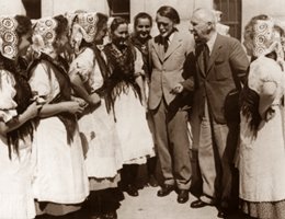 Sej, Nagyabonyban csak két torony látszik, Daljáték a Székelyfonó (1932) is egy felvonásban, mely szintén a magyar népéletből meríti tárgyát. Abban különbözik a Hárytól, hogy ennek egész zenei világa a magyar folklór anyagából bontakozik ki, és míg ott a hangszeres részek kiemelt szerepet kapnak, itt a zenei anyag csaknem egészen a vokális részekre épül. Olyan színpadi mű, amelyben a székely népi szokások, életképek egy drámai történet keretébe foglalva jelennek meg. A történet a székely falvak hétköznapjaiból ellesett jelenetek, események sűrítéséből szövődött. A fonóház nyugalmát nagy riadalom zavarja meg; a háziasszony kedvesét, a kérőt csendőrök üldözik hamis vád miatt. A kérőnek menekülnie kell. A magára maradt háziasszony aggodalmait a fonóban összegyűlt fiatalok tréfálkozása, évődése enyhíti, majd a sötét érzések balladák eljátszásával, eltáncolásával kelnek életre. Végül is a csendőrök megbilincselve hozzák meg a kérőt, akinek ártatlanságára azonban később fény derül, így a háziasszony és kérője boldogságának már semmi sem állhat útjába. A cselekmény, a tánc, a játék, tréfa, szomorúság megjelenítése végül is mind egy célt szolgál: méltó, életszerű keretet hoznak létre ahhoz, hogy a székely népdal eredeti szépségében vonulhasson be az opera színpadára. Az ünnepi köntös, amelybe a zeneszerző a népdalt öltözteti, az egyszólamú népdal sajátosságait magában hordozó, új, népdalgyökerű, magyar zene. A Psalmus Hungaricus (Magyar Zsoltár, 1923) - tenorszólóra, vegyes karra, gyermekkarra és zenekarra írt oratórium. Pest, Buda és Óbuda egyesítésének 50. évfordulója alkalmából 1923. november 19-én díszhangverseny volt a Vigadóban. Műsoron Liszt "Magyar ábránd" és Berlioz "Rákóczi induló"-ja mellett a kor három legjelentékenyebb zeneszerzőjének egy-egy műve szerepelt: Kodály műve - Dohnányi Ernő: "Ünnep nyitány" és Bartók Béla: "Táncszvit". A bemutató hangverseny műsorán Kodály művének még csak ez volt a címe: "55. zsoltár", nem sokkal később azonban már megszületett a végleges, latin nyelvű cím, mely azt jelenti: Magyar Zsoltár. A mű hatalmas erejét még az intrikusok sem tudták elhomályosítani. Már a témaválasztás is találó. Kodály tanulmányai során ismerkedett meg Kecskeméti Vég Mihály 1561-ben írott versével, amelyben a költő a Bibliából vett 55. zsoltárt átköltve magyarra fordította. Vég Mihály a távoli múltból veszi a szöveget, mely a bibliai Dávid király ajkán hangzott fel először, ezen keresztül mondja el panaszát népe reménytelen helyzetéről. Az üldözött zeneszerző művészi módon ötvözte a 16. század és saját kora fájdalmát az ősi zsidó zsoltár veretes, sodró erejű szövegével. Ez a jelképes mondanivaló nemcsak a 16. századi, hanem az 1920-as évek Horthy Magyarországát is bírálta, új aktualitást nyert. zenei és tartalmi mondanivalója tehát egyszerű, közérthető, valójában az egész magyarság nagy erejű panasza, fohásza, sajátos könyörgése. Ez a népi gyökerű, új magyar muzsika az egész zenei világ figyelmét magára vonta. A Psalmust rövid időn belül 8 nyelvre fordították le. A vers 4 soros strófákból áll, az első három sor 2-5 szótagos, az utolsó negyedik sor második egysége nem 5, hanem 6 szótagból áll. Olyasféle hármas lüktetés ez, amely a magyar verselésbe nyugat-európai hatások útján került be (a versformával rokon Tinódi Sebestyén "Krónika" egyik históriás éneke, a "Simmáját írom"). A mű egyszerű fődallama, ún. vezérdallama népdalszerkezetre emlékeztető, pentaton jellegű téma, amely a darab bizonyos formai csomópontjain következetesen visszatér, különböző karakterrel, variált alakban. Tehát a műben az ősi pentaton dallamkincsre emlékeztető, és a 16 századi magyar históriás ének hangját idéző dallam, zenei elem keveredik a nyugat-európai zene harmónia és formavilágával. A dallam ötfokúsága az 1. 2. és 4. sor vonatkozásában nyilvánvaló. A 3. sorban idegen hang jelentkezik, ami élénkebbé, mozgalmasabbá teszi a melódiát. A Psalmus Hungaricus tipikusan vokális vezérdallamát zenekari bevezetés előzi meg, mely szorosan hozzátartozik az énekes részhez: a hangszeres és énekes dallam együtt alkotja a kompozíció tartópillérét jelentő zenei anyagot. A másfél évezredes liturgikus latin szöveg, a régi magyar népzene hangja, a középkori gregorián, a 16. századi madrigálstílus, a barokk polifónia találkoznak itt klasszikus, megbonthatatlan egységben. A gyermekek világa már régóta foglalkoztatta a zeneszerzők alkotóképzeletét. Kodály gyermekkarai lehetőséget teremtenek, hogy a gyermek maga megszólalhasson. A közel 50 gyermekkarra írt művében egy-egy gyermekjátékot, mondókát, néphagyományt őrző gyermekdalt dolgozott föl (pl.: Túrót eszik a cigány). Nevéhez fűződik a híres Kodály-módszer. Pedagógiájának lényege, hogy a gyermek zenei készségét óvodáskortól fejleszteni kell, a zenei írás, olvasás váljon általánossá az iskolákban. A gyermek első találkozása a zenével nemzetének népdalkincse legyen, majd később ismerkedjék más népek népdalaival, mégpedig az adott nyelven. Kodály gyakorlatában fontos szerepet kap a karéneklés. A pedagógiai munka segítésére Kodály megírta a 333 olvasógyakorlatot, az Ötfokú zene 4 füzetét, a Bicínia Hungarica 4 füzetét. Módszerét a mai napig szerte a világon alkalmazzák. Ízelítő műveiből - MIDI: |
