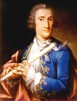 Három év múlva az uralkodó kinevezte a potsdami udvar zeneszerzőjévé és kamarazenészévé. Itt olyan neves zenészekkel dolgozott együtt, mint Franz Benda vagy Carl Philipp Emanuel Bach. Mindeközben a király fuvola tanára, az ő kiváltsága volt, hogy negatív és pozitív kritikával is illethette az uralkodó játékát. A zeneszerző ekkoriban írt művein érződik az itáliai mesterek, különösen Antonio Vivaldi hatása. Quantz jellemző módon egész életében tökéletesítette játékát és stílusát. Az elkövetkező években ismerte meg Johann Sebastian Bach és Georg Philipp Telemann zenéjét, akik nagy hatást gyakoroltak rá. 1773-ban, mint a porosz király egyik kedvenc zenésze hunyt el. Több mint háromszáz, Vivaldi stílusát követő fuvolaversenyt komponált, amelyek közül mintegy kétszázötven maradt fenn. Ezek túlnyomórészt Nagy Frigyes számára készültek és az ő hagyatékában is maradtak fent kéziratban. A versenyművek három tételesek, az ellenpontos szerkesztést összekapcsolja bennük az itáliai és a francia stílus elemekkel, saját ideáljának, a vegyes ízlésnek megfelelően. Versenyművei mellett kétszázharmincöt fuvolaszonátát, szolfeggiókat és variációkat is írt ugyancsak fuvolára, komponált triószonátákat, dalokat és áriákat, valamint néhány concerto is a neve alatt maradt fent. A fuvola hangskáláját kibővítette egy billentyű hozzáadásával. Fő műve mégis egy írásmű, az 1752-ben kiadott Fuvolaiskola, amely a következő századokban is mértékadó maradt, felbecsülhetetlenül értékes információkat nyújt a korabeli zenei ízlésről, a kompozíciós és az előadói gyakorlatról. Ízelítő műveiből - videó: