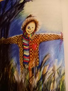 A kopár kertben fűcsomók között a szürke november ücsörög. Nyöszörög a madárijesztő, kitárt karja merev nincs más dolga, a semmibe mered. Felette egy varjú száll...