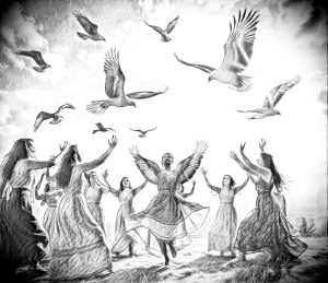 Gyertek lányok ligetre, ligetre, had kerüljünk elébe, elébe. Elébe a világnak, világnak, a világ nagy urának, urának. Tudunk mi is csatázni, csatázni, életekkel játszódni, játszódni....