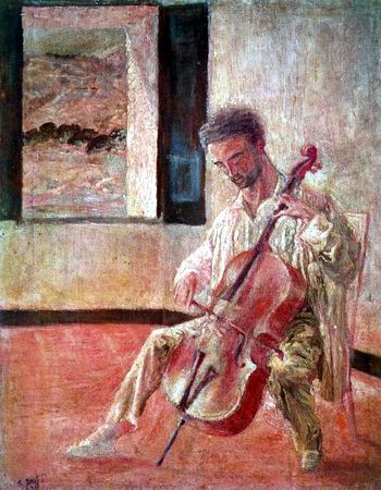 A fiatal festő, aki Bonnard bensőséges modorában festette meg csellózó szomszédját és barátját, ezen a képen is megcsillantja, milyen fölényes mesterségbeli tudással bánik a legkülönbözőbb stílusokkal.