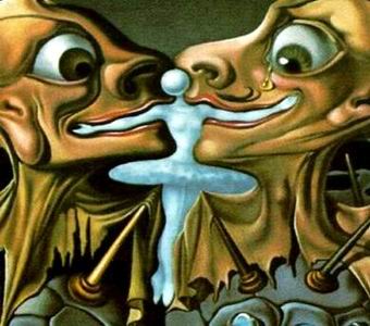 Második filmjük az 1930-ban bemutatott Az aranykor (L' Age d'Or) botrányt kavart. Dalí ismét Buñuellel közösen írta a forgatókönyvet, ám a két barát többé nem volt egyazon hullámhosszon. Dalí sok csontot akart, szentségtartókat meg Cap de Creus ősvilági sziklái között fürdőző érseket. Buñuel azonban "a maga naivitásával és aragóniai makacsságával mindezt iskolás antiklerikalizmussá sekélyesítette". A végeredmény mégis az volt, hogy Dalíról többet beszéltek, mint valaha. Részlet "Az aranykor" című filmből |