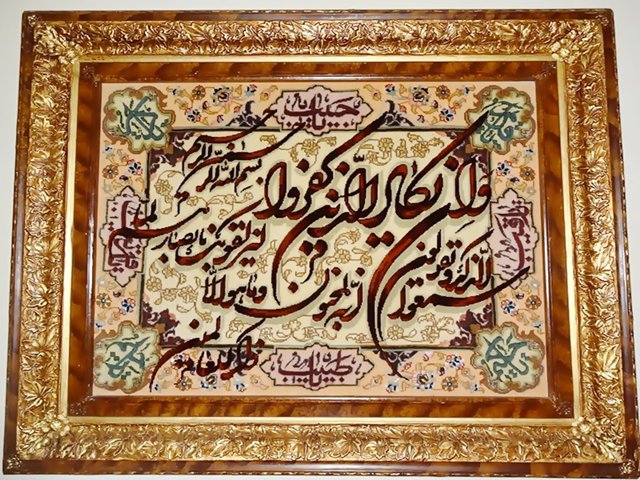 Vers a Koránból perzsaszőnyegen - héber betűk és kalligráfiák