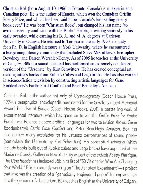 képviselő CHRISTIAN BÖK (Toronto, 1966, augusztus 10 -) kanadai kortárs