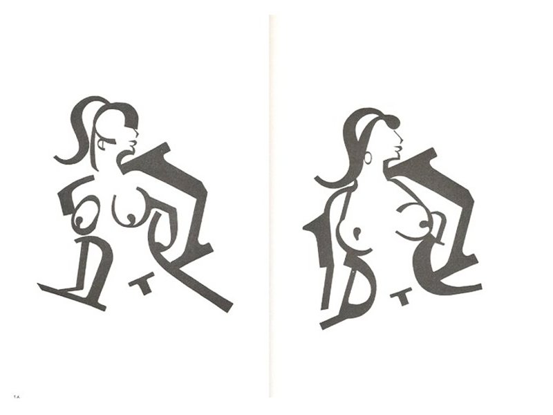 jelentését figyelmen kívül hagyta, inkább a betűkkel, kalligráfiával