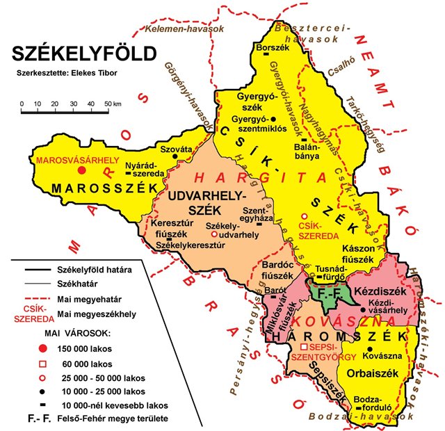 a mai Kovászna (kb. Háromszék) és Hargita megye (kb. Csíkszék és