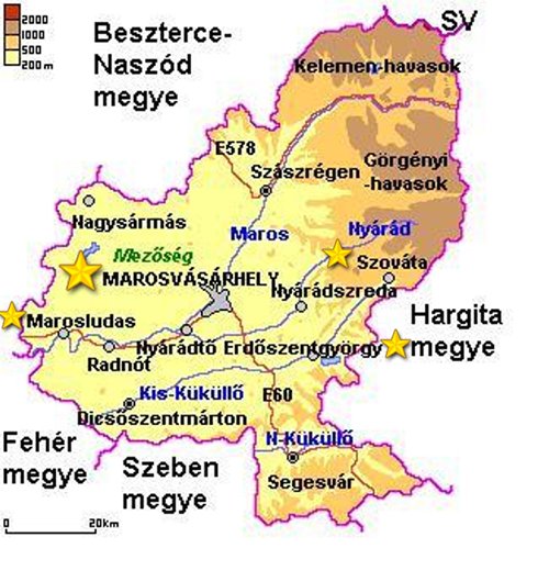 Udvarhelyszék) szinte egészen, Maros megye egy része (kb. Marosszék),