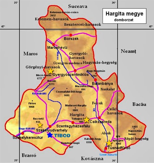 vármegye területén. A Hargita-hegység és a Csíki-havasok között