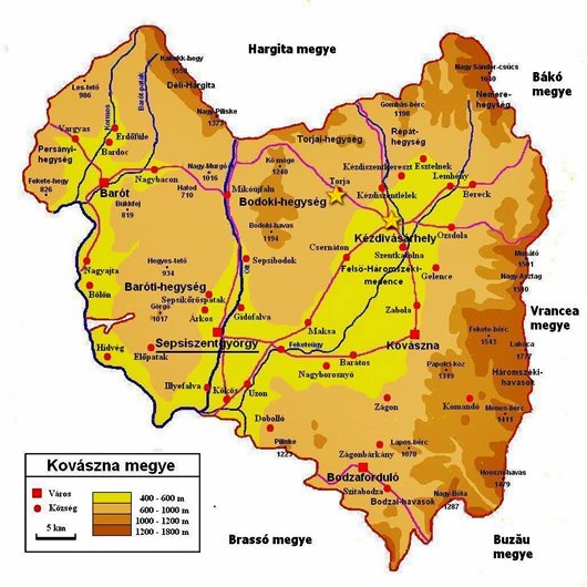 Kovászna megye területével.