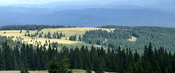 hogy a fenyvesek a hegyekről egészen a medence aljáig leereszkednek.