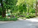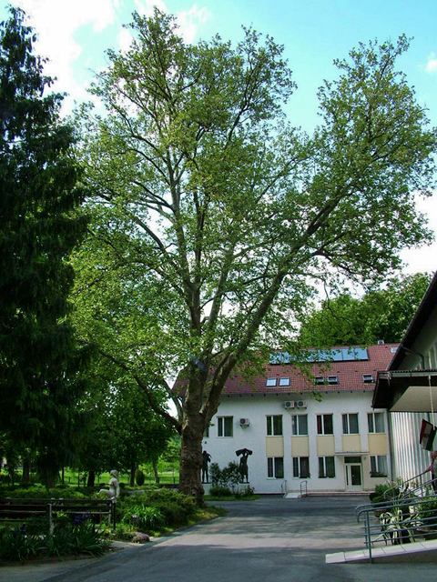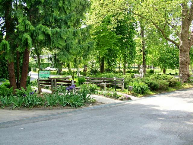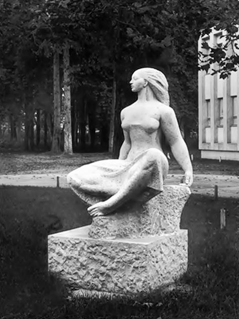 Marton László - Bőség c. mészkőszobra (1964), szemben a főbejárattal, a Platán Idősek Otthona parkjában látható.