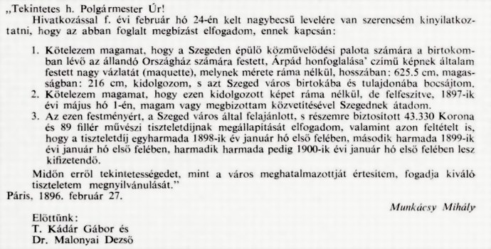 értesítette a mestert, aki levélben közölte, hogy a város feltételeinek