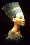 A Közép- és az Újbirodalom korának egyik talán leghíresebb szobra. Érdekesség, hogy a képen látható szobron kívül a királynőt egy befejezetlen, rózsakvarcból faragott szobor is ábrázolja. Hiába, az ő típusa volt az Amarna-kor szépségideálja. Festett mészkőből készült, 50 cm magas. Az első világháború előtt találták Tell el-Amarnában, Thotmesz szobrászművész műtermében. Befejezetlensége, a törött ureusz és a kidolgozatlan bal szem nem csökkenti a képmás szépségét. A színes festés csaknem teljesen ép, s a bőrszín meleg tónusa bájossá teszi a szobrot.