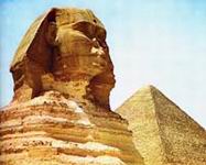 A gizai Szfinx Egyiptomban a képzőművészet szorosan kapcsolódott az építészethez. Ezt nagymértékben elősegítette a sajátos ábrázolás mód. A nagy felületek törvénye szerint síkban kiterülő formák, az egy főnézetre beállított szobrok már önmagukban is annyira tektonikus felépítésűek, hogy létezésük természetes közegeként szinte megkövetelték maguk körül az épületet. A gizai piramisok mellett egy hatalmas szfinx emelkedik. Oroszlánteste és emberfeje van, 57 méter hosszú és 20 méter magas. A fennsíkon álló mészkősziklából faragták, a sivatagi szél időről időre homokkal borítja be alsó részét és eltakarja a belsejébe vájt római kori sziklatemplomot. Valódi jelentése hosszú ideig rejtély volt. Ma már tudjuk, hogy Kelet felé tekintő alakjában Khephrén fáraót, a közelben álló piramis építtetőjét kell látnunk. Egy itt talált felirat szerint elkészülte után 1000 évvel még úgy tudták, hogy a szfinx ennek a fáraónak a képmása. A romantika ebben a gigantikus szoborban, amelyet i. e. 2500 körül faragtak ki, a távolt fürkésző tekintete miatt a megválaszolatlan kérdések titokzatos szimbólumát látta. A szfinx fejét klaft borítja, a fáraók hagyományos fejdísze. Abból a mészkősziklából faragták ki, amelyből Kheopsz piramisához bányászták a tömböket. Feltehetően Khephrén uralkodása idején készült. 1380-ban a képrombolók, később a Mamelukok súlyosan megcsonkították. Mellső lábai között látható az ún. álom-sztélé, amelyet lV. Thotmesz egy évezreddel a Szfinx elkészülte után állíttatott. A sztélé szövegében a fáraó elmondja, hogyan ajándékozta neki a Szfinx a királyi hatalmat hálából, amiért kiszabadította a sivatagi homok rabságából. |