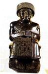 különösen kemény, kék bazaltból faragták. Kifejező realizmusa pontosan felidézi