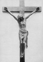 Feszület: Fadrusz bécsi akadémiai tanulmányainak befejezésekor vizsgamunkaként készítette el a feszületet, amellyel nagy sikert aratott és később Budapesten nagydíjat nyert vele. A szobor készítése során - jelentkező hiányában - saját magát kötözte keresztre és az erről készített fényképeket használta modellként. A szobor eredeti gipszmintáját a művész szülővárosának, Pozsonynak adományozta. Több bronzmásolat készült róla, a Magyar Nemzeti Galéria és a szegedi Móra Ferenc Múzeum is őrzi egy-egy példányát. Később a művész síremlékére is ezt állították a Kerepesi temetőben. Fadrusz két alkalommal is dolgozott a budavári palota díszítésén. Elõször 1897-ben faragott carrarai márványból a krisztinavárosi díszlépcsőhöz két egymással szemben álló, másfélszeres életnagyságot meghaladó tehertartó Atlaszt. Később 1901-02-ben mintázott négy hatalmas méretű kapuőrző oroszlánt, amelyekből kettő (harapásra tátott szájjal) a kapun kívül áll. A Budai Tornaegylet megbízásából sportvándordíjnak mintázta szobrát, Arany Toldija nyomán, "Toldi Miklós a farkasokkal" címmel. Ebben a szoborban a fadruszi életmű epikus realizmusa, robosztus ereje kiválóan érvényre jut.
